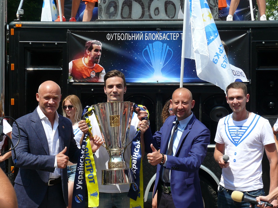 Наступним слово взяв Міський голова Одеси Геннадій Труханов: «Те, що наше місто так часто приймає Суперкубок, свідчить про системність, а системність – завжди позитивна ознака. Вважаю, ми щоразу гідно виконуємо цю місію. Вже маємо великий досвід організації Суперкубка України. Цього року так співпало, що майже одночасно у нас відбуватимуться дві великі, масштабні, навіть грандіозні події – Одеський міжнародний кінофестиваль та футбольний Суперкубок. Перша подія – явище світу культури, друга – явище світу спорту. Вважаю, за масштабністю вони приблизно рівнозначні. Ми робимо все, щоби ці грандіозні події органічно сусідили й пройшли на найвищому рівні. Задля цього, зокрема, змінили маршрут громадського транспорту. Активно працює також міська поліція. Взагалі розіграш Суперкубка – велика подія й для мене особисто – я дуже люблю футбол і колись грав на доволі серйозному рівні. Тепер радий допомогти прекрасній грі. За останні роки в Одесі здано в експлуатацію 23 нові ігрові майданчики – здається, ніде в Україні немає такого».