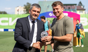 Перед початком матчу «Полісся» — «Колос» Євген Дикий вручив приз Руслану Ротаню