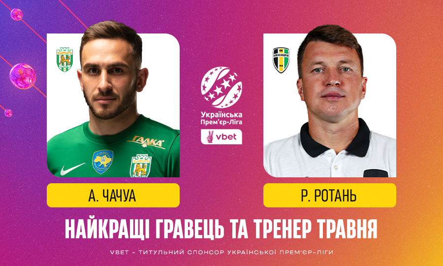 Найкращим гравцем травня VBET Української Прем’єр-Ліги визнано досвідченого півзахисника «Карпат» Амбросія Чачуа, який відзначився трьома голами у чотирьох матчах Чемпіонату УПЛ в цьому місяці. Він двічі забив «Лівому Берегу» (3:2), коли львів’яни опинилися у меншості, а у грі з «Олександрією» приніс перемогу (2:1) на 95-й хвилині.