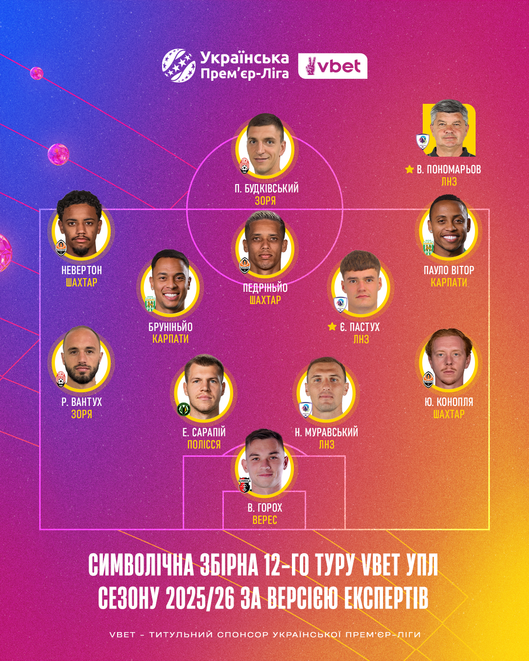 Українська Прем’єр-Ліга продовжує відзначати героїв сезону 2025/26 і склала символічну збірну 12-го туру Чемпіонату УПЛ, а також назвала найкращого гравця та найкращого тренера 12-го туру. Традиційно це було зроблено разом з ведучими, експертами, коментаторами УПЛ ТБ та представниками провідних спортивних ЗМІ України. Цього разу їх було 36.