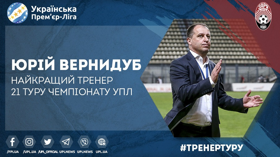 Тож наш сьогоднішній лауреат – головний тренер «Зорі» Юрій Вернидуб. Його підопічні завдали поразки третій команді поточного чемпіонату, загостривши боротьбу за медалі та вихід у єврокубки, а також вирішивши найголовніше для себе завдання на весь перший етап.