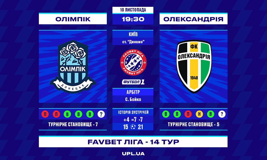 Матч 14 туру «Олімпік» — «Олександрія»: статистичне прев’ю