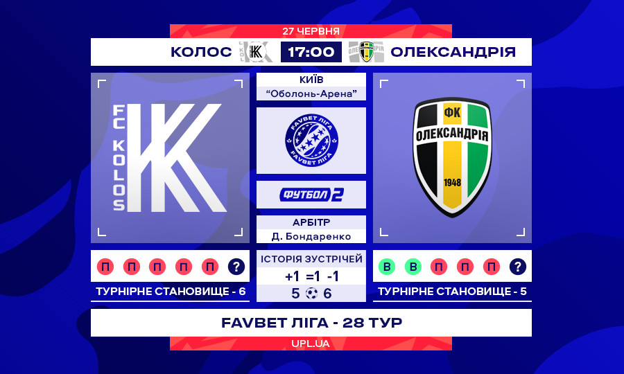 Матч 28 туру Favbet Ліги «Колос» — «Олександрія»: статистичне прев’ю