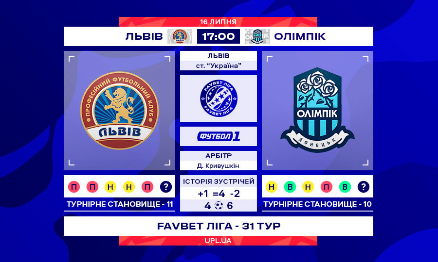 Матч 31 туру Favbet Ліги «Львів» — «Олімпік»: статистичне прев’ю