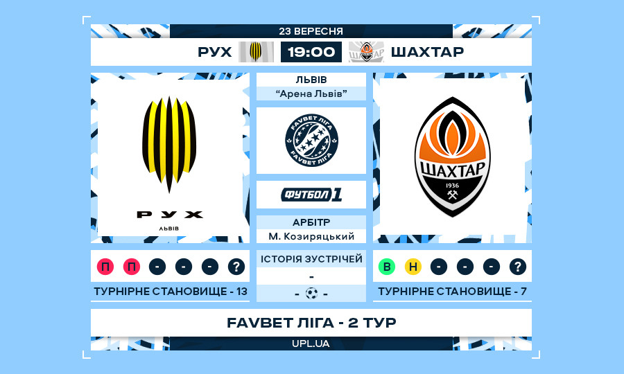Перенесений матч 2-го туру Favbet Ліги «Рух» — «Шахтар»: статистичне прев’ю