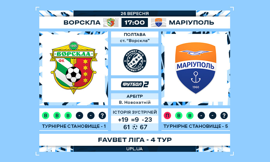 Матч 4-го туру Favbet Ліги «Ворскла» — «Маріуполь»: статистичне прев’ю