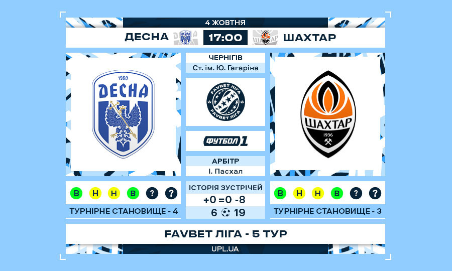Матч 5-го туру Favbet Ліги «Десна» — «Шахтар»: статистичне прев’ю