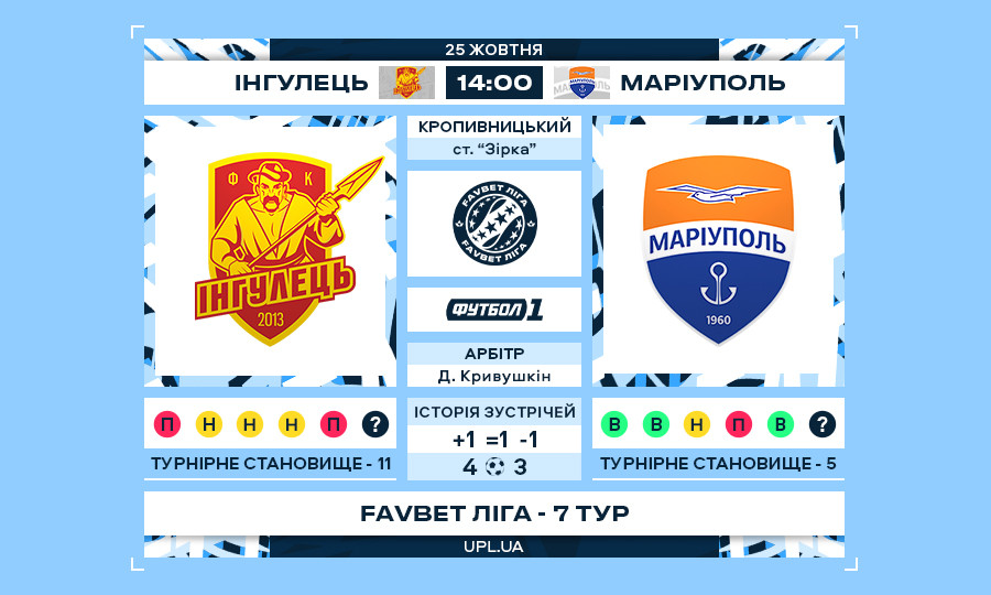Матч 7-го туру Favbet Ліги «Інгулець» — «Маріуполь»: статистичне прев’ю