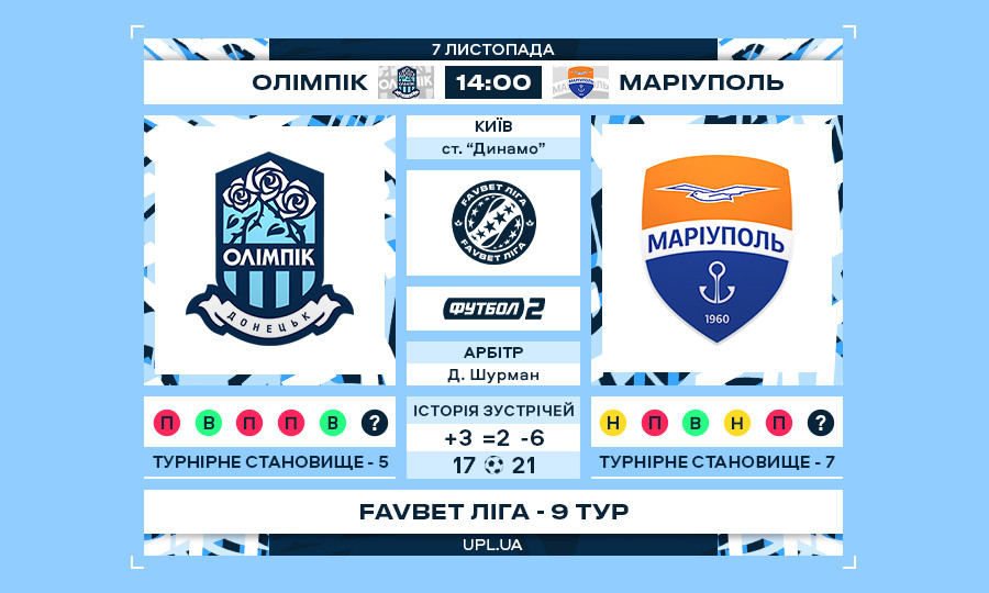 Матч 9-го туру Favbet Ліги «Олімпік» — «Маріуполь»: статистичне прев’ю