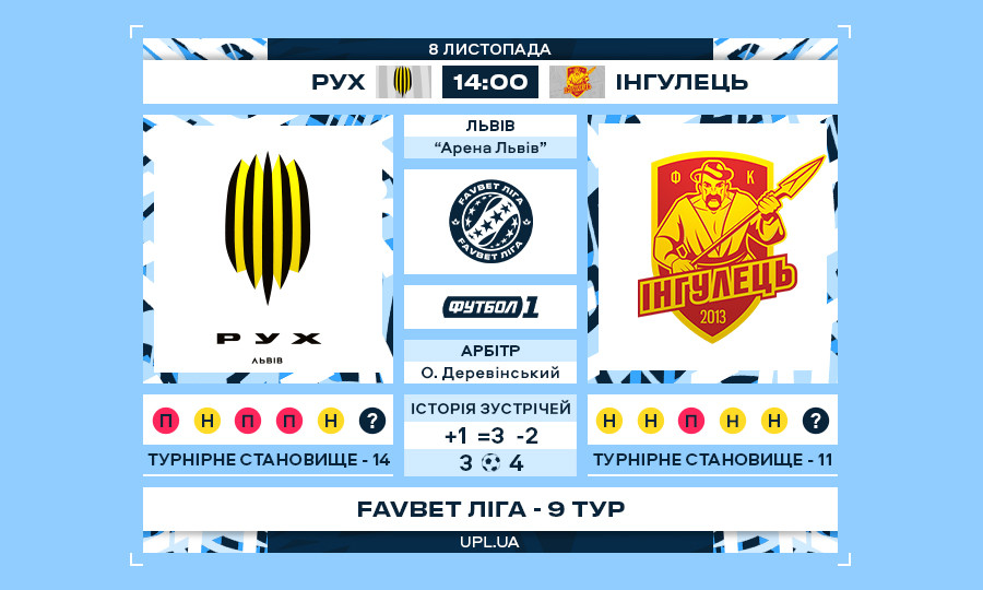 Матч 9-го туру Favbet Ліги «Рух» — «Інгулець»: статистичне прев’ю