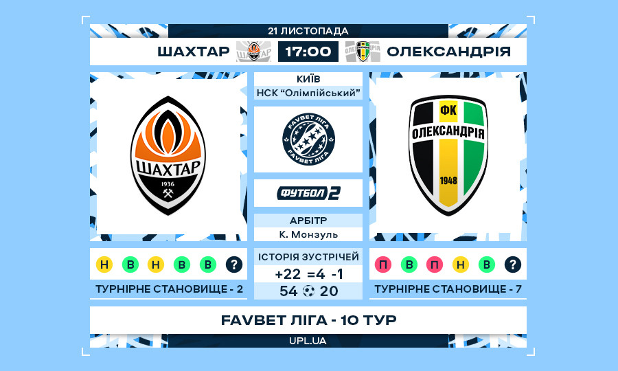 Матч 10-го туру Favbet Ліги «Шахтар» — «Олександрія»: статистичне прев’ю