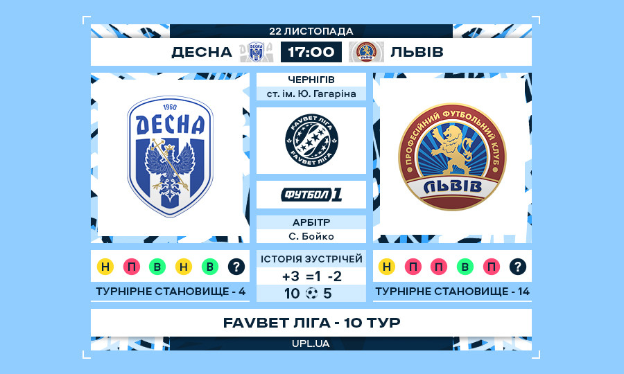 Матч 10-го туру Favbet Ліги «Десна» — «Львів»: статистичне прев’ю