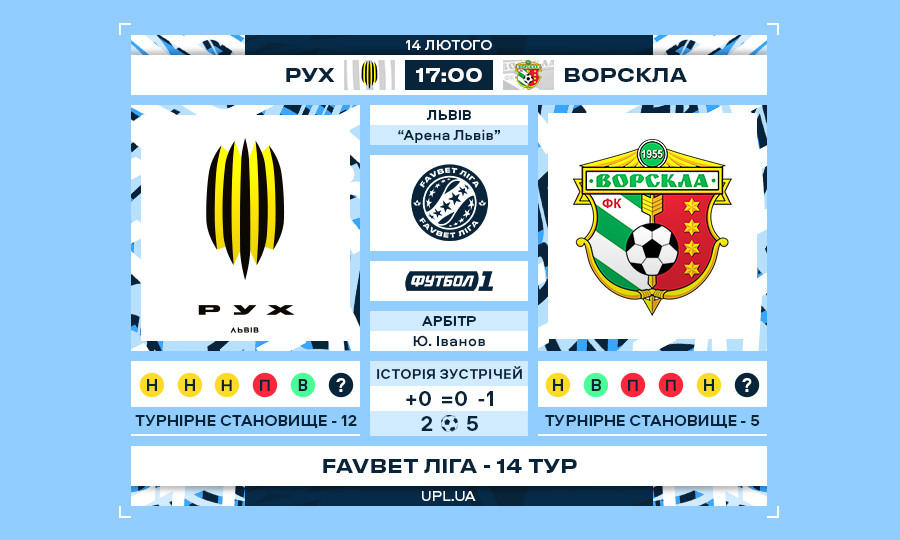 Матч 14-го туру Favbet Ліги «Рух» — «Ворскла»: статистичне прев’ю