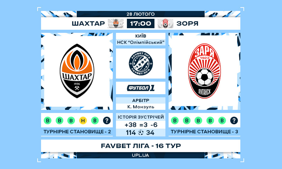 Матч 16-го туру Favbet Ліги «Шахтар» — «Зоря»: статистичне прев’ю