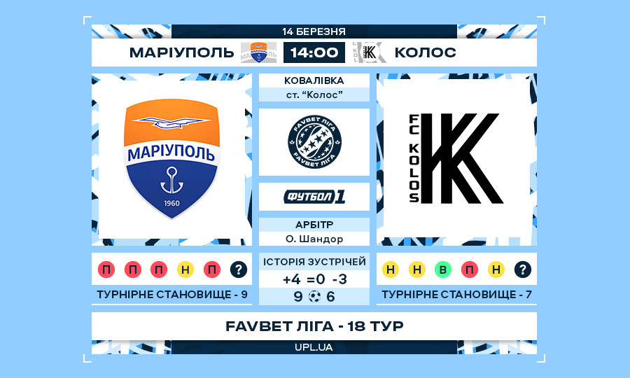 Матч 18-го туру Favbet Ліги «Маріуполь» — «Колос»: статистичне прев’ю