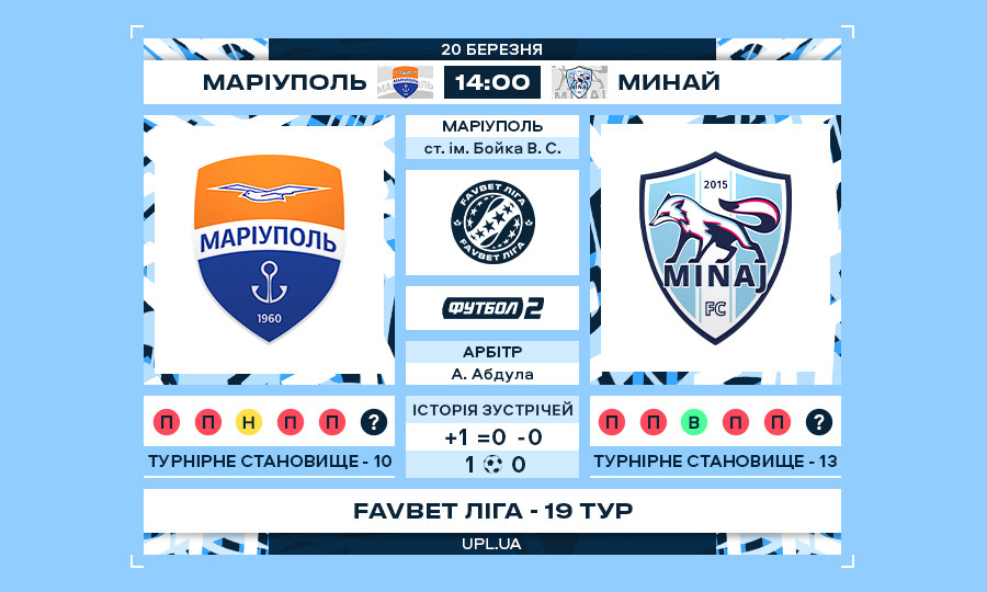 Матч 19-го туру Favbet Ліги «Маріуполь» — «Минай»: статистичне прев’ю