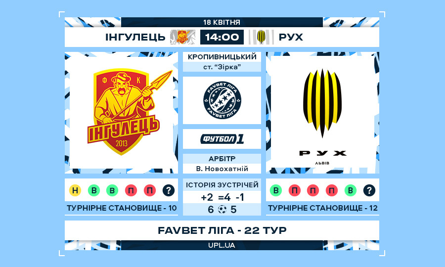 - Інгулець проведе 10-й домашній матч в УПЛ, а Руху — 10-й гостьовий.