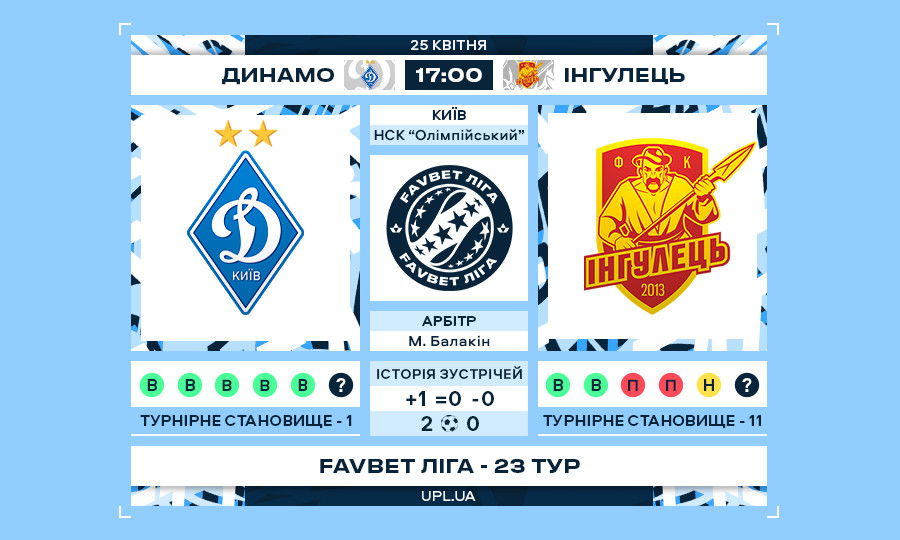 Матч 23-го туру Favbet Ліги «Динамо» — «Інгулець»: статистичне прев’ю