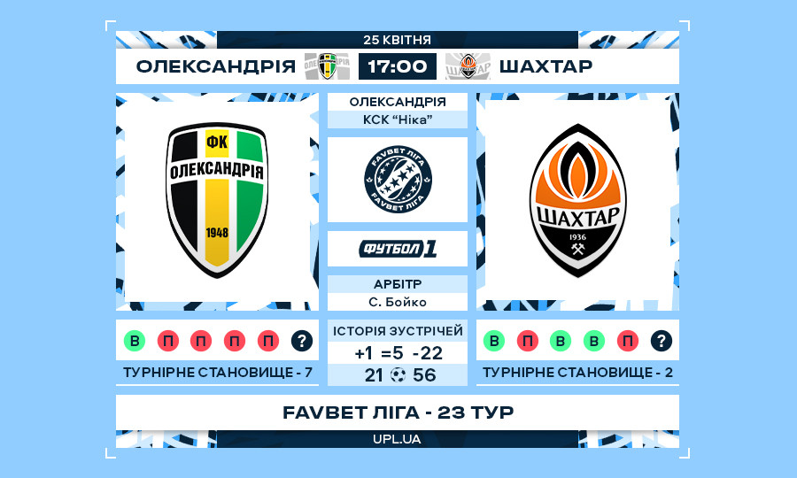 Матч 23-го туру Favbet Ліги «Олександрія» — «Шахтар»: статистичне прев’ю