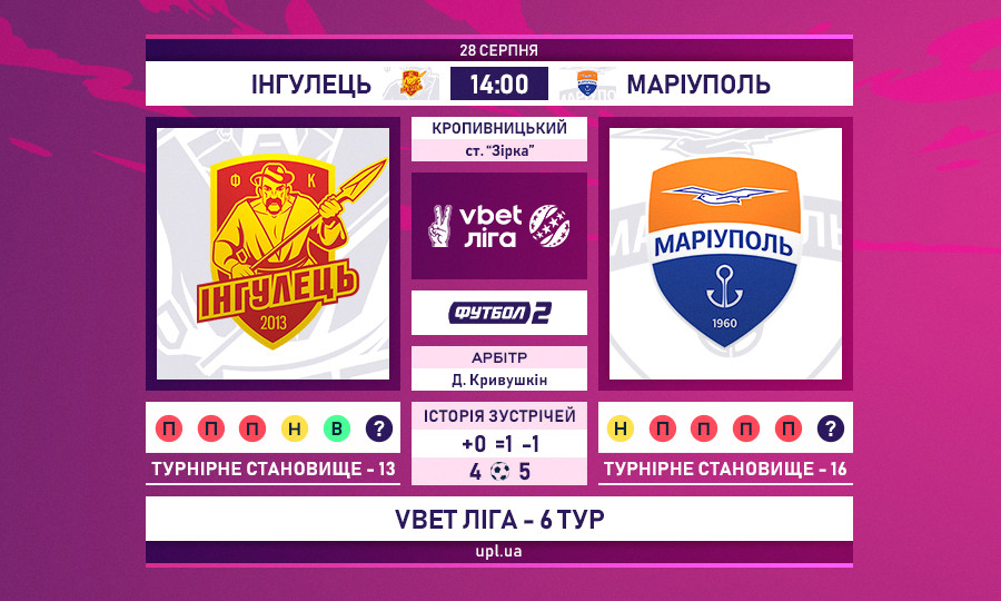 Матч 6-го туру VBET Ліги «Інгулець» — «Маріуполь»: статистичне прев’ю