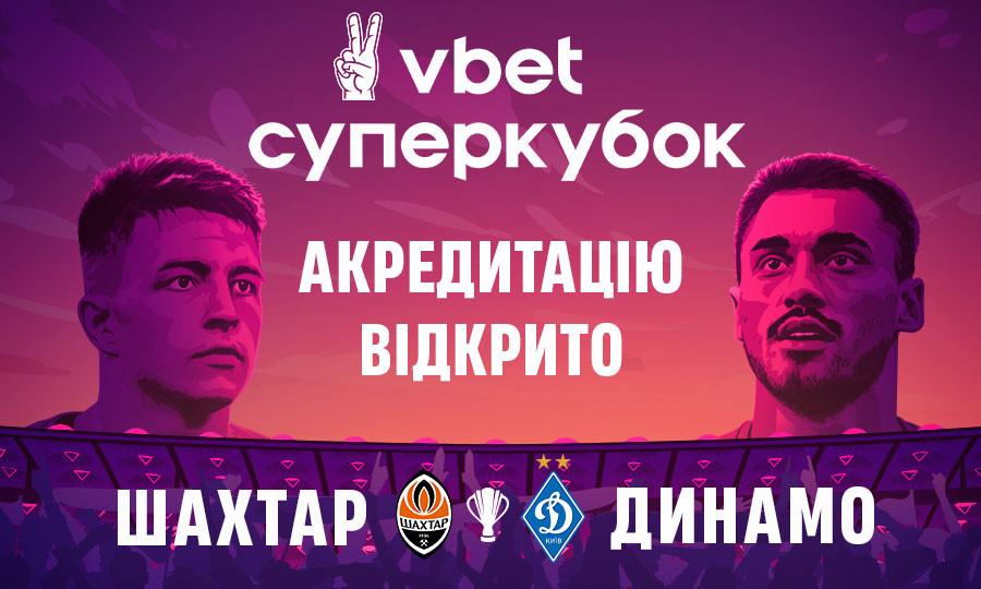 Пресслужба Української Прем’єр-Ліги оголошує акредитацію на матч за VBET Суперкубок України між «Шахтарем» та «Динамо», який відбудеться 22 вересня в Києві на НСК «Олімпійський». Початок матчу о 21.00.