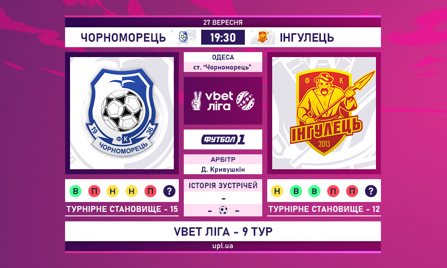 Матч 9-го туру VBET Ліги «Чорноморець» — «Інгулець»: статистичне прев’ю