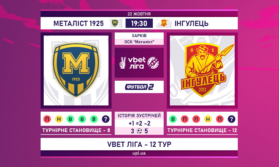 Матч 12-го туру VBET Ліги «Металіст 1925» — «Інгулець» статистичне прев’ю