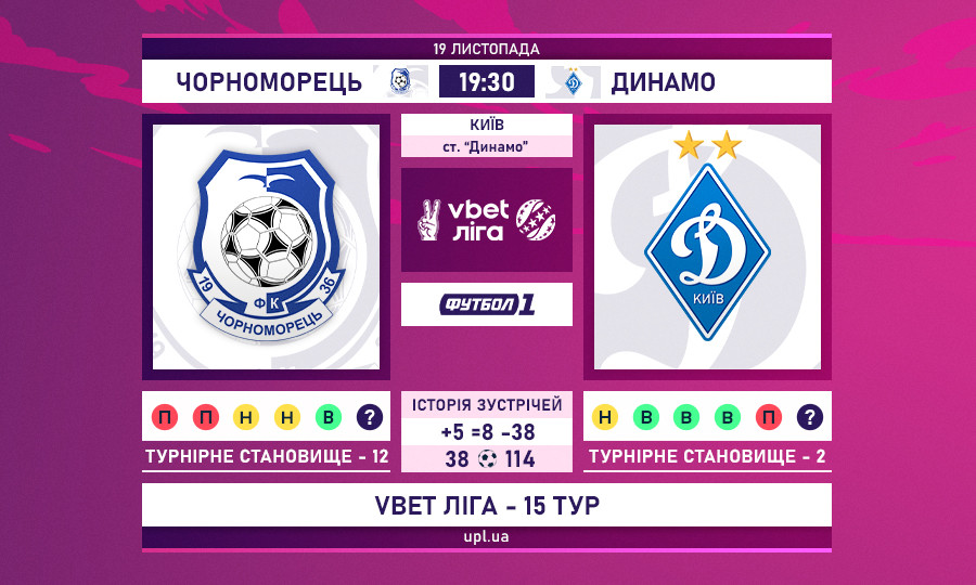 Матч 15-го туру VBET Ліги «Чорноморець» — «Динамо»: статистичне прев’ю