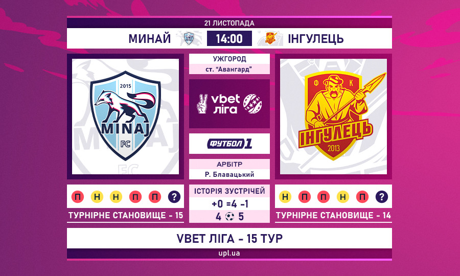Матч 15-го туру VBET Ліги «Минай» — «Інгулець»: статистичне прев’ю