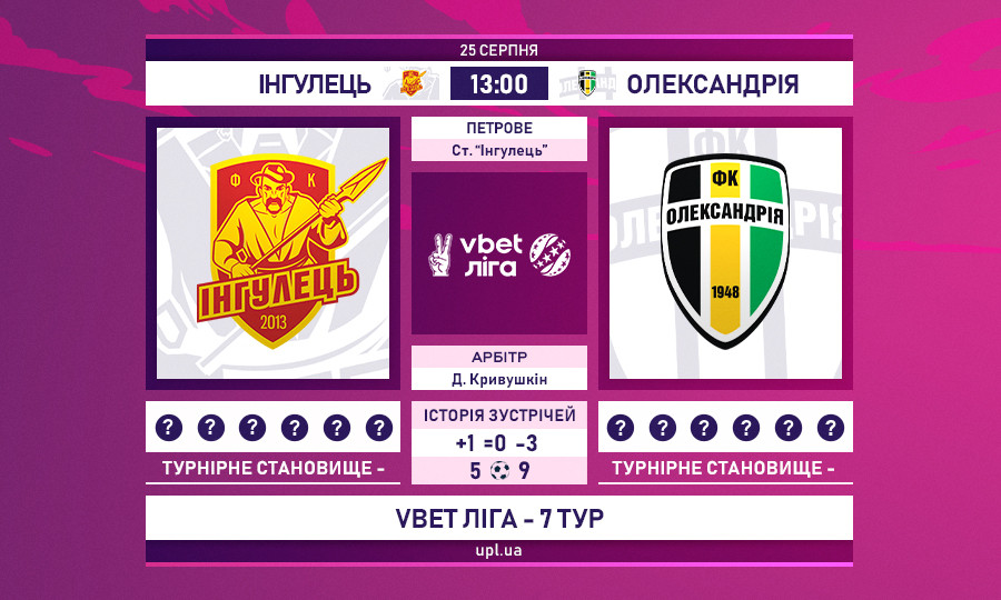 На полі Інгульця – 1 матч: +1=0-0 м’ячі 1-0