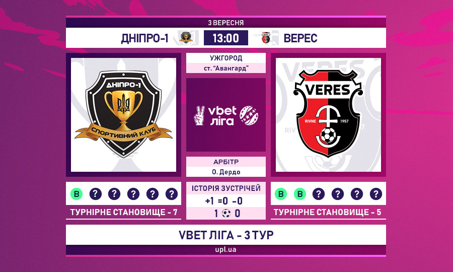 Дніпро-1 – Верес – 1:0