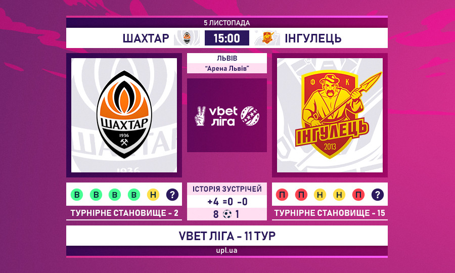 На полі Шахтаря – 2 матчі: +2=0-0 м’ячі 3-1