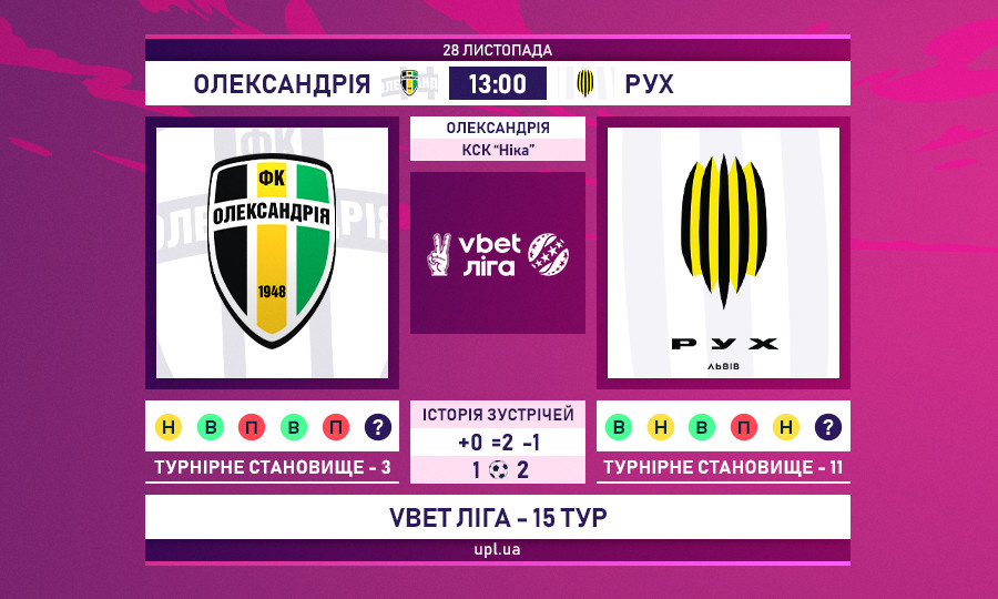 На полі Олександрії – 1 матч: +0=1-0 м’ячі 0-0