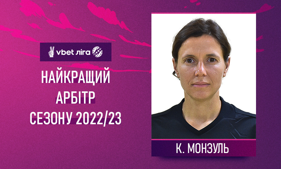 На базі анкетування за підсумками сезону-2022/23 клуби УПЛ визнали найкращим арбітром Чемпіонату України представницю Харкова — Катерину Монзуль. Для неї це вже третя перемога.