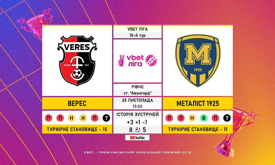 На полі Вересу – 3 матчі: +2=1-0 м’ячі 3-0