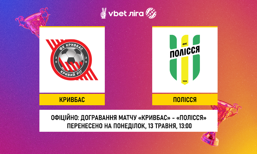 За взаємною згодою команд, догравання матчу перенесено на завтра, понеділок 13 травня. Старт: о 13:00.