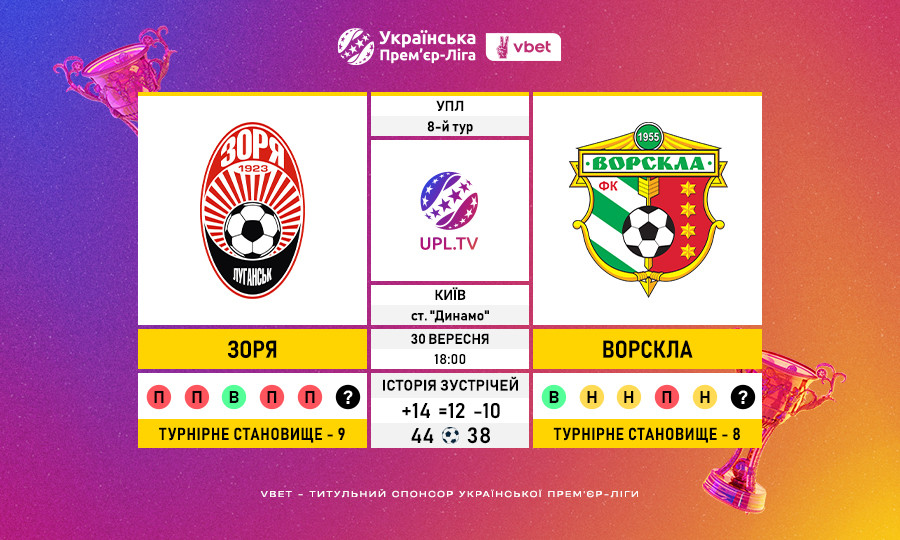 Переможна серія Зорі в матчах з Ворсклою триває в УПЛ 5 ігор.