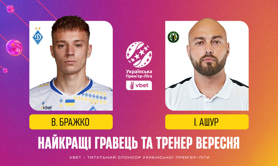 Найкращим гравцем вересня VBET Української Прем’єр-Ліги визнано півзахисника «Динамо» Володимира Бражка, за ним розташувалися два представника «Полісся» та один — «Шахтаря».