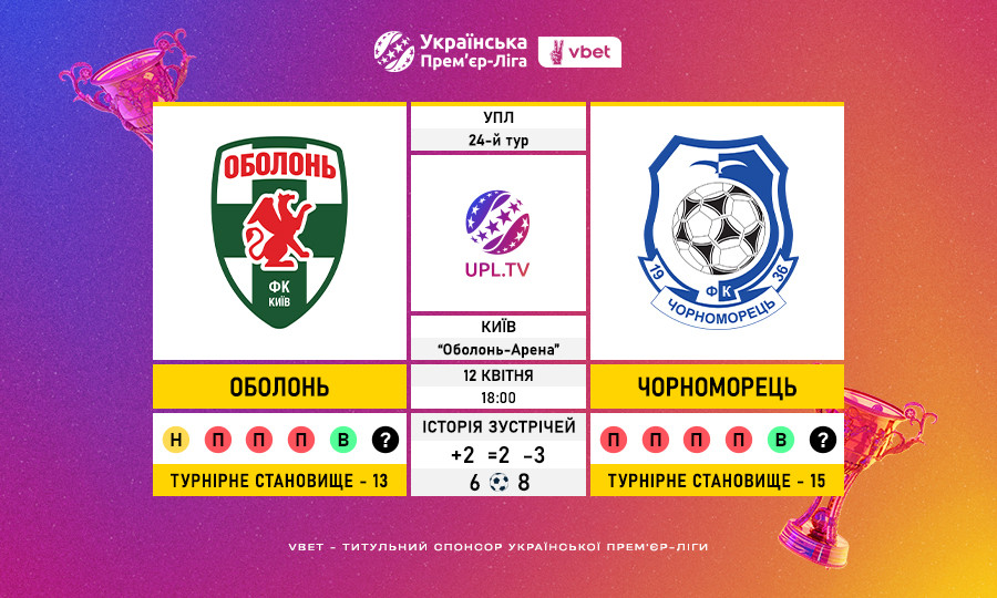 На полі Оболоні — 3 матчі: +1=1-1 м’ячі 4—4