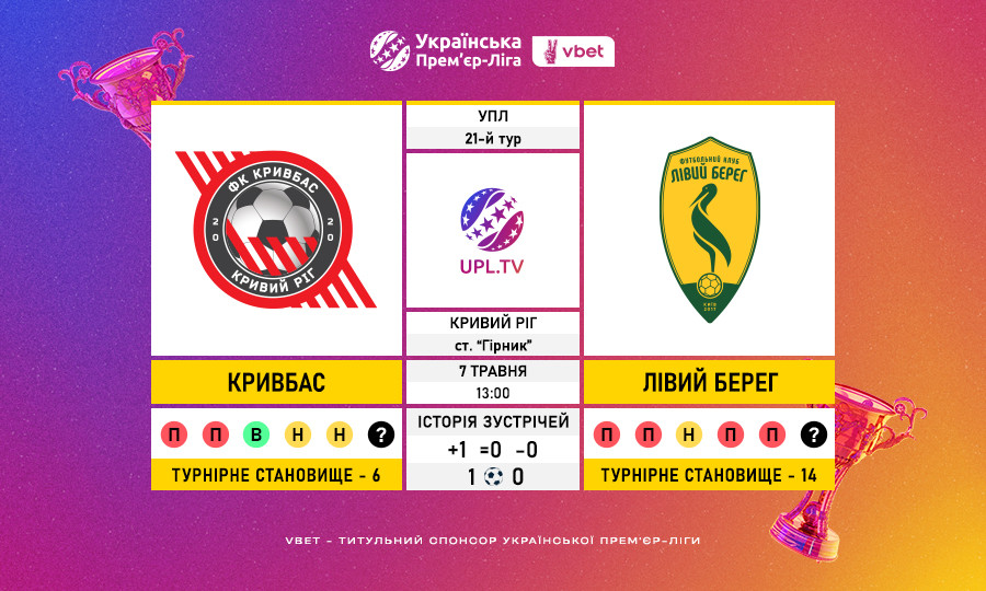 Матч 21-го туру VBET Української Прем’єр-Ліги «Кривбас» — «Лівий Берег»: статистичне прев’ю
