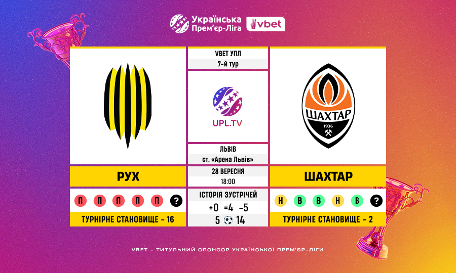 Матч 7-го туру VBET Української Прем’єр-Ліги «Рух» — «Шахтар»: статистичне прев’ю