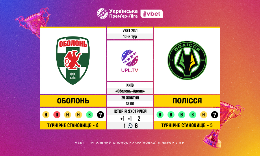 Оболонь та Полісся проведуть свої 70-ті матчі в УПЛ.