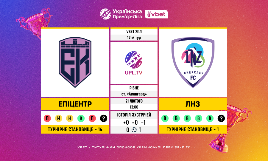 Матч 17-го туру VBET Української Прем’єр-Ліги «Епіцентр» — ЛНЗ: статистичне прев’ю
