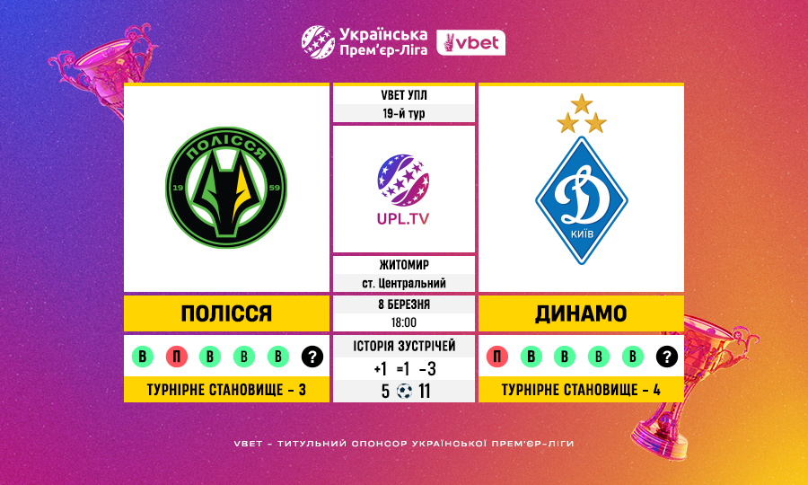 Полісся не перемагає Динамо впродовж 4-х матчів УПЛ: нічия та 3 поразки.