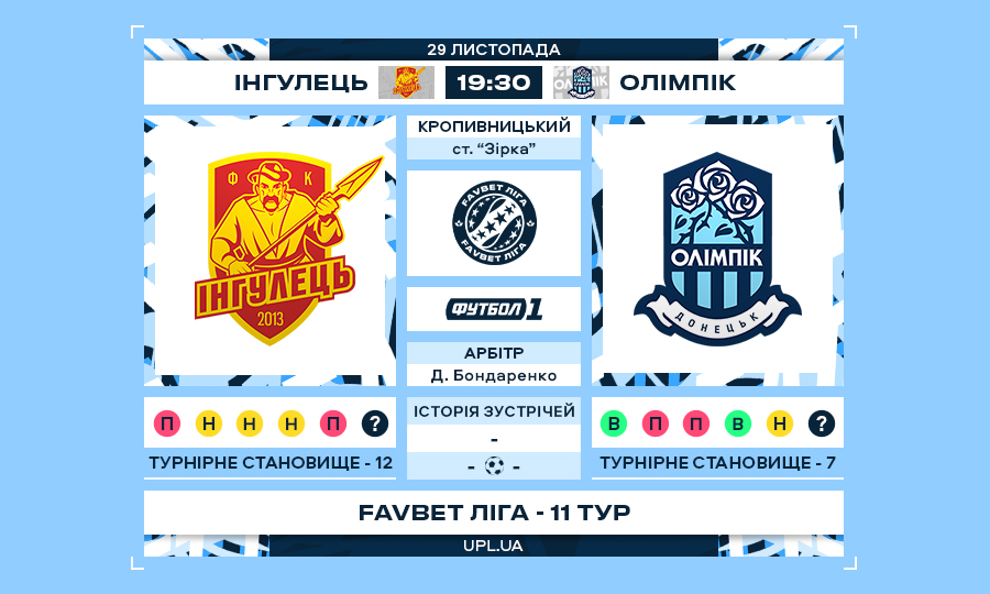 Матч 11-го туру Favbet Ліги «Інгулець» — «Олімпік»: статистичне прев’ю