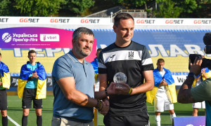 Перед початком матчу «Зоря» — «Кривбас» Євген Дикий вручив приз Миколі Балакіну