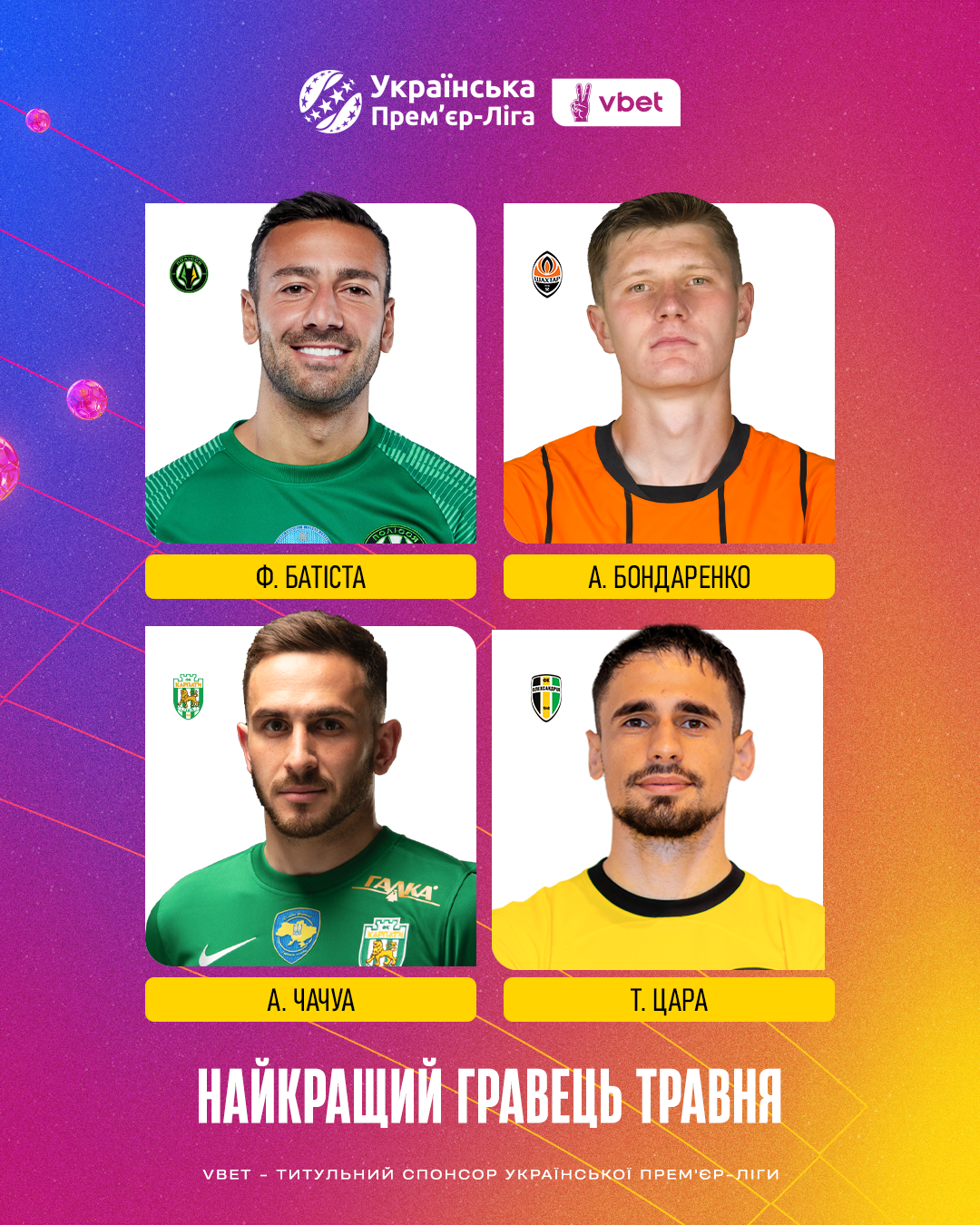 Українська Прем’єр-Ліга традиційно разом із титульним спонсором, компанією VBET Україна, проводить голосування для визначення найкращих тренера та гравця місяця в Чемпіонаті УПЛ.