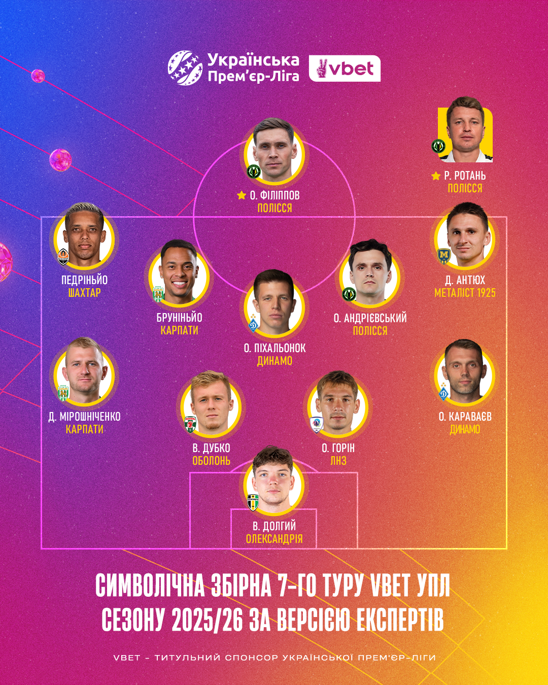 Українська Прем’єр-Ліга продовжує відзначати героїв сезону 2025/26 і склала символічну збірну 7-го туру Чемпіонату УПЛ, а також назвала найкращого гравця та найкращого тренера 7-го туру. Традиційно це було зроблено разом з ведучими, експертами, коментаторами УПЛ ТБ та представниками провідних спортивних ЗМІ України. Цього разу їх було 40.