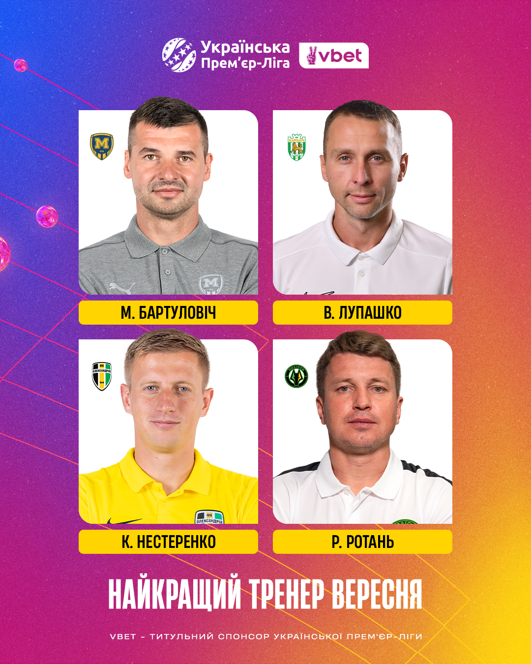 Після цього з числа тренерів та гравців, чиї робота та дії на полі були найбільш видатними протягом трьох вересневих турів Чемпіонату УПЛ, будемо обирати Найкращого тренера вересня та Найкращого гравця вересня в УПЛ. Проголосувати можна тут.