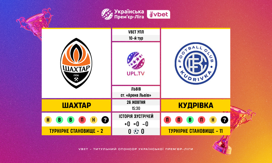 Матч 10-го туру VBET Української Прем’єр-Ліги «Шахтар» — «Кудрівка»: статистичне прев’ю